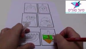 סיגל סגליס – מומחית לריפוי בעיסוק לילדים מדגימה איך ליצור בובות אצבע לחנוכה בעזרת שימוש בדמויות טרובדור האהובות של עמית אופי