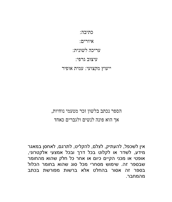 • הטמפלט כולו מרווח כבר בצורה אופטימלית ומכיל את כל עמודי הפתיחה שיש להוסיף לכל ספר.