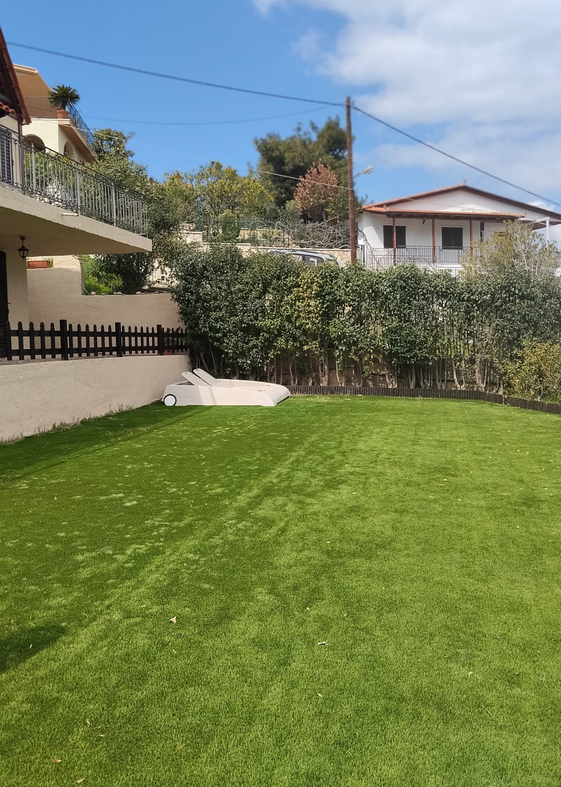 הגינה הגדולה והמטופחת כוללת פינת BBQ ואזור ישיבה,